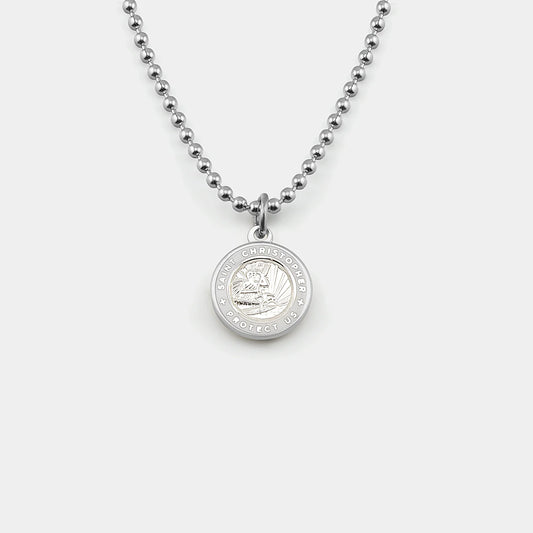 St. Christopher Necklace - Silver/White